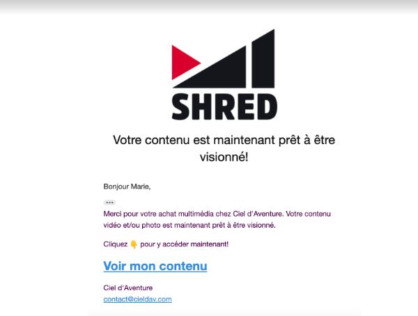 Voir un exemple du message que vous allez recevoir, et qui vous donne accès à la plate-forme :